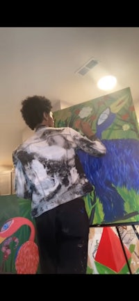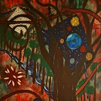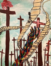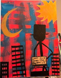 Choice Theory , Sun Ra , The Matrix Were main influences for this painting in the movie Space is the Place Sun Ra is playing chess against a character that is portraying Satan, and in the movie the game of chess their playing every choice they make influences those who follow and are influenced by them to make certain choices in life to further each of their agendas, they both have a goal in mind , they feel is the better for the Black people but for there to be a hero. There must also be a villain, and so that is the part of the movie that my painting depicts also as far as the matrix is concerned the matrix in my eyes as a documentary over life, and Keanu Reeves is a portrayal of us as our on our own perspectives here in life and how we have a choice to live our life in fear or to live our life in Freedom also the ties to blue and red in regards to the psychological study of color theory and how color effects or choices which’s leads me to critical choice theory . Terrell Cheers has a study a theory and in that theory you know I’m not really able to describe what it says, but what I can say is it it has heavily influence this and I believe that it would be very important for anyone interested to check out the link to his theory to learn more about it